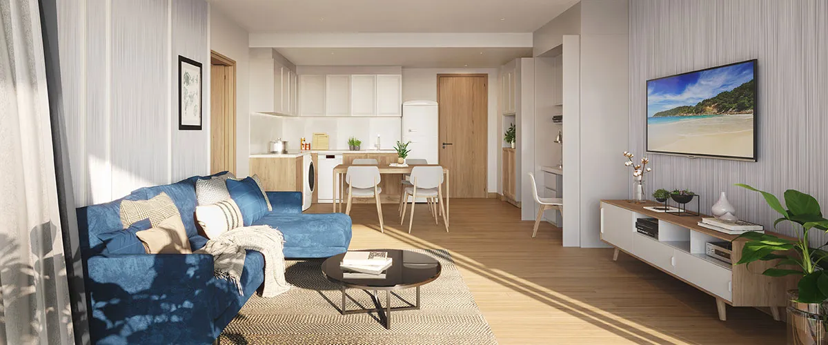 Новый жилой комплекс, расположенный всего в нескольких метрах от пляжа и располагающий собственной прибрежной зоной отдыха, откуда открываются лучшие виды на закат над сверкающими водами Андаманского моря. Современные апартаменты с 1–3 спальнями площадью от 60 м² спроектированы с акцентом на простор, комфорт и виды. Особенность комплекса — полуоткрытые террасы-lanai, которые можно открыть для отдыха на свежем воздухе или закрыть стеклянной перегородкой, увеличивая внутреннее пространство. Жители могут выбрать вариант с полной меблировкой, а на крыше комплекса их ждет зона отдыха с панорамным видом на море, создающая атмосферу курортного безмятежного уюта.